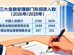 新华社向纭嬉 金融投资报记者 吉雪娇 加强和完善现代金融监管需要优秀的人才。随着2026年国考报名结束,金融监管人才的招录情况再度引发关注。 根据招录计划,2026年中国人民银行、国家金融监督管理总局和中国证监会拟招录5586人,较2025年减少840人。其中,金融监管总局、证监会小幅扩招;中国人民银行则出现缩减。 制图 文宛金融监管部门人才招录引人关注 2026年度国考共计划招录3.81万人,本次国考