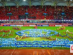成都日报锦观新闻自贡融媒记者 周馨钰 熊丹 文/图 3月14日晚,自贡南湖体育中心,“川超”决赛阶段自贡主场赛前表演,九条长达二十余米的彩龙应声而起,与舞扇汇成的“海浪”交织翻腾,象征着九队争冠的“九龙戏珠”画面瞬间点燃近三万人的看台。 执龙奔腾的,并非专业院团,而是来自自贡市沿滩区九洪乡中心小学(下称“九洪小学”)的90名少男少女和他们的老师。他们表演的,也并非普通舞龙,而是“九洪女子龙灯”。这一特色鲜明的非遗