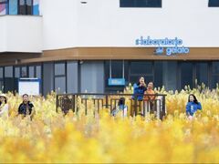 乐山市融媒体中心春光正好,这几日,资阳人的朋友圈被一片彩色花海刷了屏。 走进临空经济区仁里村,DNβ资阳数字游民社区近未来中心门前,17亩彩色油菜花开得正盛。粉的似霞、橘的如焰,五种色彩交织铺开,微风拂过,花浪翻涌。站在田埂上远眺,花海与白色建筑相映,恍惚间竟有几分“莫奈花园”的意境。 游客打卡彩色油菜花田。全媒体记者 张建 摄 “快,帮我在这儿拍一张!”穿汉服的姑娘蹲在花丛边,同伴举着手机找角度。三五成群的阿