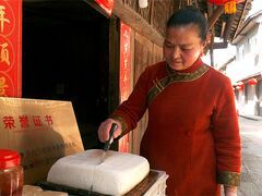 四川观察“摸摸看,是不是像婴儿的皮肤一样嫩滑?好豆、好水,加上纯手工制作,才能做出这么细腻、鲜嫩的豆腐。”近日,在千年古镇内江市资中县罗泉镇,曹素芳一边向记者展示刚出炉的豆腐,一边道出这门技艺百年飘香的秘诀。记者循着豆腐清香,探访这门古老技艺在传承与创新中的发展之路。 罗泉豆腐 古法工艺,匠心制作“记忆味道” 凌晨两点的罗泉镇,多数人家还在沉睡,曹素芳和丈夫已准时起身,开启一天的豆腐制作。转动石磨、过箩