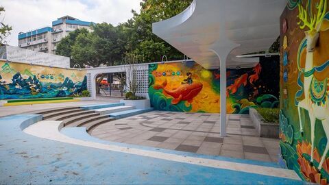 自贡网自贡融媒记者 叶卫东 实习生 白可 美育花园口袋公园位于丹桂街道春华路与华园街交叉口,占地面积约1000平方米,其建设理念充分满足周边居民休闲需求、学生集散功能及家长等候需要,运用色彩与几何美学元素,打造兼具实用价值与艺术特色的城市微空间。主要景观包括美育画廊、艺术特色景墙、特色廊架及城市橱窗,集中展示学生优秀美术作品,通过美育主题墙激发青少年创新思维。口袋公园内墙绘以“美育花园”为主题,精选《长