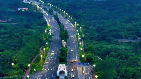 自贡融媒记者 李秋玥 摄影报道 11月10日夜幕降临,记者在高铁自贡站附近通过无人机鸟瞰,双向8车道的江姐大道车流如织。