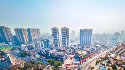 自贡融媒记者 宋姿熠 五星街商圈,街区视野开阔、气象舒展。青砖肌理与现代业态错落交织,建筑布局规整有序,将历史韵味与商业摩登完美融合。该画面完整展现了盐都老城核心商圈的丰富肌理与崭新风貌,生动体现了城市更新建设后的从容格局与商业成果。烟火气与时尚感交织成老城新景 记者 宋姿熠 摄俯瞰五星街,整条街道如一条舒展的绸带。记者 宋姿熠 摄