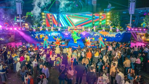 自贡网自贡融媒记者 周姝 春风拂面,自贡方特恐龙王国活力全开。日前,备受期待的“方特恐龙穿越跑”鸣枪起跑。这场集运动、趣味于一体的亲子盛事,将在4月的每个周末及春假、清明小长假持续举行,为游客打造专属的春日欢乐记忆。活动启动当天,园区内洋溢着浓厚的假日氛围。参赛家庭在领取限量版赛事包后,纷纷换上统一的亲子战袍,在“恐龙小镇”的签到墙前创意摆拍,定格温馨瞬间。备受喜爱的“熊强三人组”与新恐龙IP“奔宝”惊