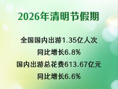 自贡网文化和旅游部4月7日公布2026年清明节假期文化和旅游市场情况。经文化和旅游部数据中心测算,假期3天,全国国内出游1.35亿人次,同比增长6.8%;国内出游总花费613.67亿元,同比增长6.6%。 这个假期,人们走出家门,拥抱春天,在青山上慎终追远,在乡野间度假休闲,在公园里赏花品春。多地春假叠加清明假期形成小长假,推动4月1日至6日出行热度显著提升,人们走得更远、待得更久、玩得更好。祖国各处春