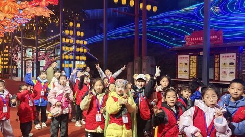 自贡网自贡融媒记者 幸维微 李婷 王小校 文/图 1月18日,自贡市小记者协会的30余名小记者走进中华彩灯大世界园区,提前解锁这场即将于1月23日正式亮灯的光影盛宴。在流光溢彩的灯组间,小记者们以童真视角捕捉非遗魅力,用好奇之心探寻科技与传统的碰撞,开启了一场别开生面的文化研学之旅。当晚,小记者们身着统一采访装备,在协会老师的带领下有序入园。刚踏入园区,高35米的“华结映门”灯组便以恢宏气势让孩子们