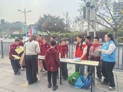 自贡网为进一步提升未成年人法治意识与自我保护能力,普及民政领域惠民政策,营造全社会关心关爱未成年人、知晓用好民生保障政策的良好氛围,3月18日,贡井区志愿服务总队、贡井区民政局联合在西城广场开展2026年自贡市贡井区扶贫帮困活动暨“普法护苗·政策惠民”宣传活动。 活动现场,民政志愿者们通过设置宣传展台、悬挂宣传横幅、发放资料手册、面对面答疑等形式,重点面向未成年学生群体开展精准宣传。志愿者们用通俗易懂的