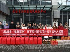 荣县融媒体中心2月11日,马年新春佳节前夕,荣县退役军人志愿服务队联合荣县青阳街道退役军人志愿分队、四川海牧牧业有限公司、荣县平科食品有限公司、旭水大饭店、四川省拥军模范龚怡、台湾嵌入式暨单晶片发展协会副秘书长蒋莉以及寒假社会实践的同学,组成慰问组深入旭阳镇、青阳街道、东兴镇的城区及农村,开展2026年 “戎耀荣州” 春节慰问活动,为唐运槐,龚池贵,蒋芳华、刘玉文、张绍富等18名退役老兵、现役军人家属、困难党员