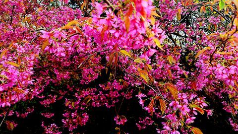 徐振宇 自贡融媒记者 兰艳 冬日的荣县铁厂镇,正被一场盛大的冬樱花事点亮。1月10日,记者在大丰村山间看到,此刻的冬樱树上,粉红花簇密密匝匝缀满枝头,黄褐嫩叶点缀其间。微风拂过,万千花瓣如蝶翼轻颤曼舞。在相传为诸葛亮督造兵器的古冶铁遗址旁,天然铺就出一条浪漫的粉色花径。阳光穿透层叠花枝,光影斑驳间,每一朵冬樱都绽放着冬日独有的温柔,成为吸引游人纷至沓来的核心景致。快门声此起彼伏,定格下这份自然与