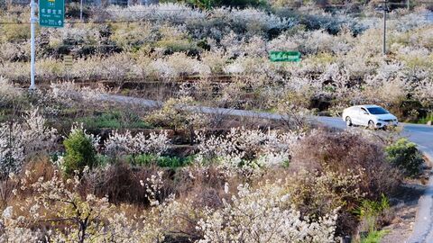 荣县融媒体中心自贡融媒记者 罗乐 李秋玥 摄影报道 新年里的自贡,处处花团锦簇、缤纷浪漫。乡村公路在田野阡陌间蜿蜒纵横,犹如一条条通往春天的花路。人在车中坐,车在画中游。一路前行,一路好风光。图为2月24日,记者拍摄于荣县铁厂镇茨芭坳村,樱桃花盛开给游客带来洁白无瑕的视觉冲击。
