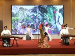 荣县融媒体中心9 月 25 日,荣县音乐舞蹈协会以 “祖国在我心 金秋盈丰年” 为主题,举办庆祝中华人民共和国成立 76 周年文艺汇演,用艺术盛宴礼赞祖国华诞,来自文艺界的 100 余名代表到场观看汇演。 现场节目形式丰富,涵盖传统器乐、合唱、舞蹈、独唱等,既传承文化根脉,又饱含爱国深情。其中,荣县音乐舞蹈协会选送的《盛唐令》颇具特色,以箜篌、古筝演奏搭配茶艺展示,将古典韵律与生活美学巧妙融合,让观众沉浸式感受