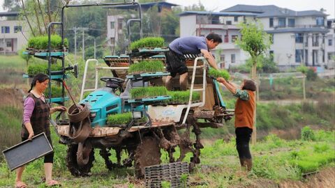 自贡网自贡融媒记者 罗乐 李秋玥 文/图 进入4月,自贡市122.5万亩水稻下秧在即。近期,富顺县古佛镇农户密切关注雨情墒情气温变化,在全市范围内率先实施稻秧移栽。同时,依托农业机械化力量,加速栽插进程,为水稻丰产丰收奠定坚实基础。4月2日,在位于古佛镇凤仪村8组的“天府粮仓•百县千片”建设行动——富顺县水稻百亩超高产攻关片内,两台全自动插秧机按照机载导航系统设置的行进路线,在高标准农田里来回驰骋。插秧