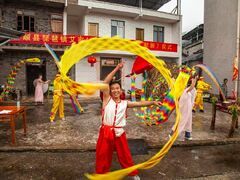 富顺融媒金秋时节,硕果飘香。近日,富顺县琵琶镇艾家村赵家坝热闹非凡,一场以“传承传统・感恩丰收”为主题的庆丰收《献新》活动在此举行。从清晨的炊烟袅袅到午后的欢声笑语,村民们齐聚一堂,在传承非遗民俗的同时,尽显邻里间团结友爱的“一家亲”温情,也让春种秋收的喜悦与文化铸魂润村的成效在这片土地上充分彰显。 当日清晨,艾家村便已焕发生机。鸡鸣声中,村民们早早起床,清扫门前院坝、布置活动场地,默契的配合间满是对丰收