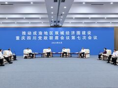 央视新闻客户端推动成渝地区双城经济圈建设重庆四川党政联席会议第七次会议座谈会召开 壮大成渝主轴挺起中部脊梁 推动国家战略走深走实更好服务国家全局 袁家军王晓晖讲话 胡衡华黄强发言 6月26日,推动成渝地区双城经济圈建设重庆四川党政联席会议第七次会议座谈会在重庆市璧山区召开。重庆市委书记袁家军主持并讲话,四川省委书记王晓晖出席并讲话。重庆市委副书记、市长胡衡华,四川省委副书记、省长黄强发言。国家发展改革委秘书长伍