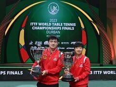 新华社客户端新华社南非德班5月28日电(记者苏斌、谢江)孙颖莎28日在德班世乒赛女单决赛中以4:2击败队友陈梦,获得个人首座世乒赛单打冠军奖杯。樊振东以4:2战胜王楚钦,成功卫冕男单冠军。中国队包揽本届世乒赛五个单项冠军。 5月28日,男单冠军樊振东(左)和女单冠军孙颖莎合影。新华社记者 陶希夷 摄 陈梦在过往交手记录中以5:4稍占上风,这是两人在东京奥运会之后又一次在世界大赛的决赛中相遇。陈梦以11:5顺利