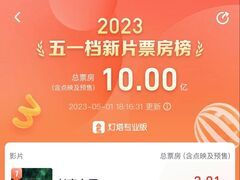 潮新闻根据灯塔专业版数据,截至5月1日18时16分,2023年五一档新片总票房突破10亿元,其中票房排名前三的影片分别是《长空之王》《人生路不熟》《这么多年》。
