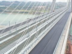 央视网宜宾临港公铁两用长江大桥公路沥青路面摊铺完成川观新闻记者 兰珍 4月9日,成自宜高铁重点控制性工程——宜宾临港公铁两用长江大桥公路沥青路面摊铺完成,大桥附属工程进入收尾阶段,预计将于2023年底建成通车。 此次完成的公路沥青路面摊铺全长1451米,宽11.75米,摊铺厚度为9厘米。铺设过程中,滚烫的沥青通过宽达6.5米的吐料口,均匀地摊铺在半幅公路路面上,一旁“候场”的双钢轮压路机和胶轮压路机紧随