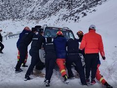 四川新闻网3月27日,四川金川县110指挥中心接到群众报警,6名自驾游游客被困在4600米海拔的高山上,且氧气瓶氧气即将耗尽,其中4人出现高反现象。接到报警后,公安、消防、医疗等部门迅速赶往现场处置。 救援力量沿途克服道路积雪结冰、大雾等恶劣气候条件,多次对道路落石、积雪进行清理。经约两小时行车,在海拔约4600米的垭口处发现两车6名游客因连续降雪,积雪过深导致车辆陷入雪中无法行进。救援人员立即为其送上氧气