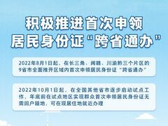 央视新闻客户端记者8月17日从公安部获悉,公安部日前制定并印发2022年服务经济社会发展助力稳住经济大盘重点措施,其中包括推进首次申领居民身份证“跨省通办”。 2022年8月1日起,在长三角、闽赣、川渝黔三个片区的9省市,全面推开区域内首次申领居民身份证“跨省通办”。 2022年10月1日起,在全国其他省市逐步启动试点工作,年底前在试点地区实现群众首次申领居民身份证无需回户籍地,可在现居住地就近办理。