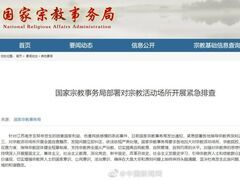 人民日报据国家宗教事务局:针对江苏南京玄奘寺发生的损害国家利益、伤害民族感情的恶劣事件,日前国家宗教事务局发出通知,紧急部署各地指导宗教界深刻汲取教训,举一反三,对宗教活动场所开展全面自查整改,发现问题立即纠正,依法依规严肃处理。 国家宗教事务局要求各地加大对宗教活动场所、宗教院校、宗教团体的督导巡查力度,指导宗教团体健全规章制度,支持宗教界全面从严治教,切实提高自我教育、自我管理、自我约束的水平。