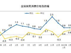 中国天气网国家统计局9日发布数据显示,2月份,全国居民消费价格指数(CPI)同比上涨0.9%,涨幅与上月相同,国内物价总水平继续保持平稳运行。 “2月份,受春节因素和国际能源价格波动等共同影响,CPI环比涨幅略有扩大,同比涨幅总体平稳。”国家统计局城市司高级统计师董莉娟说。 (图片来源:国家统计局官网)统计数据显示,2月份,工业消费品价格同比上涨3.1%,涨幅比上月扩大0.6个百分点,其中汽油和柴油价格分别