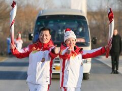 新华网新华社北京2月2日电(记者王君璐、吴文诩)农历新年伊始,奥运火炬在北京点燃。北京冬奥会火炬2日在北京奥林匹克森林公园、北京冬奥公园、首钢园传递,500余名火炬手参与传递。 2月2日,火炬手李秀平(右)与李学征进行火炬传递。 新华社记者 孟晨光 摄2日上午,在北京中轴线北端的奥林匹克森林公园,火炬手们沿着健身步道依次前行,中国人民解放军航天员大队大队长景海鹏,中国篮球协会主席姚明,希腊驻华大使乔治·