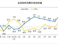 四川新闻网2021年10月份,全国居民消费价格同比上涨1.5%。其中,城市上涨1.6%,农村上涨1.2%;食品价格下降2.4%,非食品价格上涨2.4%;消费品价格上涨1.6%,服务价格上涨1.4%。1—10月平均,全国居民消费价格比上年同期上涨0.7%。10月份,全国居民消费价格环比上涨0.7%。其中,城市上涨0.7%,农村上涨0.7%;食品价格上涨1.7%,非食品价格上涨0.4%;消费品价格上涨1.1