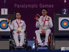 新华社新华社东京8月28日电(记者赵建通、沈红辉)梦之岛公园射箭场,东京残奥会射箭项目的第一个决赛8月28日结束。赛场大屏幕上的数字定格在138:132,这意味着在复合弓混合团体W1级比赛中,中国队最终取胜,“90后”运动员陈敏仪、张天鑫联袂拿下项目首金。在梦之岛,两位初登残奥舞台的“90后”射手,成功圆梦。陈敏仪坐在轮椅上被推出赛场的时候,手里捧着围绕着橄榄枝的残奥会吉祥物,胸前挂着的是几分钟前刚领到