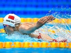 新华社新华社东京7月25日电(记者夏亮、周欣、吴书光)55秒89,继预赛游进56秒大关后,张雨霏在东京奥运会女子100米蝶泳半决赛中继续高歌猛进,以排名第一的成绩昂首晋级决赛。突尼斯18岁小将哈夫纳维在男子400米自由泳决赛中在第八道异军突起夺冠,而澳大利亚队则在女子4×100米自由泳接力决赛中打破世界纪录,中国队刷新亚洲纪录。7月25日,中国女子4×100米自由泳接力选手在赛前热身。新华社记者许畅摄张