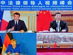 求是网7月5日晚,习近平主席在北京同法国总统马克龙、德国总理默克尔举行视频峰会。这既是时隔两个多月之后三国领导人再次对话,也是庆祝中国共产党成立100周年大会之后习主席首次出席国际多边外交活动。如何牢牢把稳中欧关系前进航向?这次视频峰会面向世界释放了丰富信息。△视频丨习近平同法国德国领导人举行视频峰会频频对话,彰显中欧关系重要性去年以来,习近平主席先后6次与法国总统马克龙通电话,5次与德国总理默克尔通电