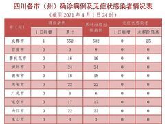 新华网记者4月2日从四川省卫健委获悉,4月1日0-24时,四川新增新型冠状病毒肺炎确诊病例1例(境外输入,为3月24日自柬埔寨乘机抵蓉,4月1日确诊),新增治愈出院病例2例,无新增疑似病例,无新增死亡病例。截至4月1日24时,全省累计报告新型冠状病毒肺炎确诊病例949例(其中境外输入395例),累计治愈出院929例,死亡3例,目前在院隔离治疗17例,377人尚在接受医学观察。4月1日0-24时,全省无新
