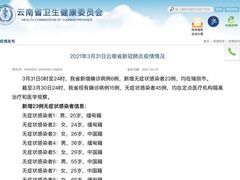国家卫健委云南卫健委消息,3月31日0时至24时,云南省新增新冠肺炎确诊病例6例,新增无症状感染者23例,均在瑞丽市。截至3月30日24时,云南省现有确诊病例15例,无症状感染者45例,均在定点医疗机构隔离治疗和医学观察。新增23例无症状感染者信息:无症状感染者1:男,20岁,缅甸籍无症状感染者2:女,24岁,缅甸籍无症状感染者3:女,26岁,中国籍无症状感染者4:男,36岁,缅甸籍无症状感染者5:女,29