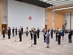 健康四川微信公众号香港特别行政区政府今(16)日上午在政府总部举行副局长和政治助理宣誓仪式,全体12位副局长和14位政治助理在行政长官林郑月娥见证下,宣誓拥护《中华人民共和国香港特别行政区基本法》,效忠中华人民共和国香港特别行政区。图:香港特区政治委任官员宣誓拥护《基本法》和效忠香港特区仪式开始,现场奏唱国歌,各人肃立及面向国旗、区旗,其后在香港特区环境局副局长谢展寰带领下,众人举起右手以广东话宣誓。根据《基本法》