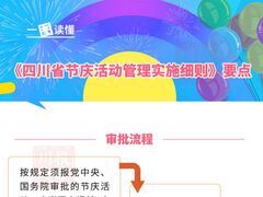 央视新闻为进一步规范节庆活动举办,加强节庆活动监督管理,促进节庆活动健康发展,日前,经四川省委常委会会议审议批准,省委办公厅、省政府办公厅印发了《四川省节庆活动管理实施细则》(以下简称《实施细则》)。《实施细则》对各类节庆活动的管理权限、申请和审批程序、备案管理、评估管理、监督管理等作出明确规定,特别对审批流程、举办方式、经费等作出了更加细致严格的规定。