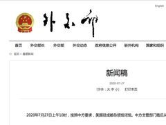 中国新闻网2020年7月27日上午10时,按照中方要求,美国驻成都总领馆闭馆。中方主管部门随后从正门进入,实行接管。在今天(27日)的外交部例行记者会上,发言人汪文斌作出回应。汪文斌表示,7月21日,美方单方面挑起事端,突然要求中方关闭驻休斯敦总领事馆,对此中方已向美方提出了严正交涉,要求美方立即撤销有关的错误决定,否则中方必将作出正当和必要的反应。7月24日,中国外交部通知美方关闭美国驻成都总领事馆。今天