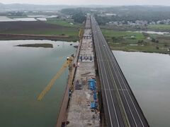 央视新闻客户端川观新闻记者 兰珍 王眉灵 11月19日,新建的桂花涪江特大桥主桥提前40天顺利合龙。该项目是G42南充至成都高速公路扩容工程项目(以下简称成南扩容项目)重要控制性工程之一,由蜀道集团川高公司投资。此次大桥主桥合龙,标志着成南扩容项目建设取得阶段性进展,为2025年全线建成通车奠定坚实基础。 主桥顺利合龙成南扩容项目新建桂花涪江特大桥位于遂宁市船山区,跨越涪江和247国道,全长1.26公里,是为缓