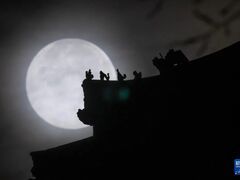 央视新闻客户端新华社发(王勇刚摄)11月16日凌晨在黑龙江省齐齐哈尔市龙沙公园拍摄的“超级月亮”。 当日凌晨,农历十月的满月现身夜空,这是今年第四次、也是最后一次“超级月亮”。