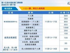 中国新闻网第十五届中国航展 将于11月12日—17日在珠海举行 开幕在即 门票销售情况如何? 还有哪些展区的门票可以购买? ↓↓ 据悉,本次航展门票分为: 珠海国际航展中心门票 无人机无人船演示区(斗门莲洲)门票 金凤台观演区门票 目前珠海国际航展中心15—17日公众日所有门票(含个人票、优惠票、套票一、套票二)均已售罄。如有退票,剩余门票将在官方购票平台进行再次公开销售。 想去航展现场的观众还可以购买两个