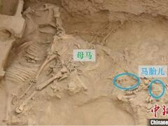 央视网中新社郑州10月22日电 (记者 韩章云)为期3天的2024中国动植物考古学大会22日持续在河南郑州举行。记者从大会获悉,中国科研人员在宁夏姚河源遗址二号车马坑(CMK2)发现动物死后分娩现象。 姚河源遗址位于宁夏回族自治区彭阳县,从西周早期延续至春秋早期,是目前发现的西周时期最西北的一处封国都邑城址。 宁夏姚河源遗址发现的母马及其死后分娩的马胎儿遗存。(受访者供图)据西北大学博士研究生黄泽贤介绍