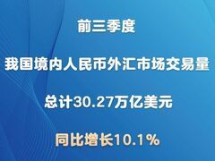 央视新闻客户端国家外汇管理局10月22日在国新办新闻发布会上发布数据 前三季度 我国境内人民币外汇市场交易量总计30.27万亿美元 同比增长10.1% 外汇市场交易活跃 记者从国家外汇局获悉 今年以来 我国跨境资金流动趋向均衡 外汇市场呈现较强韧性 市场预期和交易总体理性有序 人民币汇率在合理均衡水平上保持基本稳定