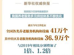 央广网记者10月21日从民政部获悉,近年来,我国养老服务多元供给体系不断优化,居家社区养老服务加快发展。截至今年2季度末,全国各类养老服务机构和设施41万个,其中社区养老服务机构和设施36.9万个,与2019年相比分别增加了1倍、1.2倍。