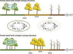 新华网新华社北京10月17日电(记者温竞华)秋季物候是温带森林对气候变化的敏感响应指标,也是影响森林碳汇能力的重要因素。记者从中国科学院植物研究所获悉,该所苏艳军研究组揭示了温带森林冠层结构影响秋季物候的机制,为预测秋季物候对气候变化的响应及森林碳汇能力提供了科学依据。 相关研究成果近日在线发表于国际学术期刊《自然·气候变化》。 冠层结构通过调控微气候影响温带森林秋季物候(中国科学院植物研究所供图)现有