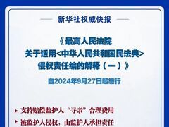 央视新闻《最高人民法院关于适用<中华人民共和国民法典>侵权责任编的解释(一)》9月26日发布,自9月27日起施行。司法解释聚焦民法典实施后社会广泛关注、审判实践中亟需解决的重要问题,明晰责任、定分止争,保障和促进社会公平正义。 司法解释明确非法使被监护人脱离监护的侵权责任,支持赔偿监护人寻亲的合理费用;明确严重精神损害认定标准。与刑事制裁共同构成制裁违法、救济权益的一体两翼,切实保障公民基本权