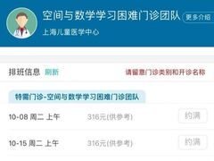 中国新闻网近日,上海儿童医学中心心理卫生团队与上海交通大学心理学院联合设立了“空间与数学学习困难门诊”,该门诊于10月8日开放,每周二服务学习数学、物理、化学等感到困难的学生。 在官方预约挂号渠道查询看到,该“空间与数学学习困难门诊”系“特需门诊”,挂号费316元(供参考),目前开放预约的三天均已约满。 图源:上海儿童医学中心患者服务门诊预约小程序据上海儿童医学中心患者服务公众号发布的“门诊介绍”,研究显示