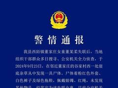 央视新闻客户端8月12日,山西省运城市芮城县西陌镇马夭村董家庄自然村发生一起儿童失踪案,两岁女童于自家院子门口失踪。 9月24日,山西芮城县公安局发布警情通报:我县西陌镇董家庄女童董某柔失联后,当地组织干部群众多日搜寻、公安机关全力侦查,于2024年9月23日,在邻近董家庄的谷家村西一处崖底杂草丛中发现一具尸体。尸体着粉红色外套、白色裤子及绿色拖鞋,佩戴银镯、红绳,未发现其他物品。经鉴定为该失联女童。目前公安机