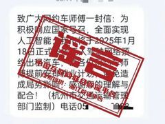央视新闻中新网9月13日电 据杭州市交通运输局官方微信消息,杭州市交通运输局13日发布辟谣信息: 今日,网传一则冒用杭州交通运输部门名义发送的虚假信息,内容为【致广大网约车师傅一封信:为积极响应国家号召,全面实现人工智能;我市将于2025年1月18日正式投放无人驾驶网络预约出租汽车,请各位网约车师傅提前安排就业计划,避免造成局势影响,感谢您的理解与配合!(杭州市交通运输部门监制)电话12328】。 经查,