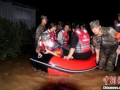 新华社中新网崇左9月11日电(王斐 欧阳明君 杨益城)受台风“摩羯”影响,广西崇左市左江江州段、龙州段等水位暴涨,城区、乡镇多处被洪水围困,交通中断,十分危急。截至9月10日18时,武警广西总队崇左支队任务官兵共协助地方政府排查农户92户,查看险情46处,救助受困民众44人。 图为武警官兵转移受灾民众。杨益城 摄9月9日23时许,武警广西总队崇左支队出动60余名官兵携带冲锋舟、救生衣、救生绳等救援器材,