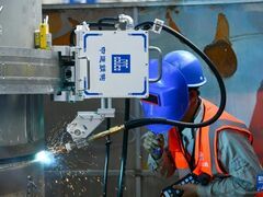 新华社客户端9月5日,10台智能焊接机器人在深圳湾超级总部基地C塔项目建设现场正式投入使用。本次投用的柔性焊接机器人由中国建筑自行研发,承担项目东塔10根直径2.5米外框钢柱、约7000吨钢构件的现场焊接任务。 据介绍,C塔项目位于深圳市南山区深圳湾超级总部基地中心,最高高度400米,设计为连廊双子塔结构,是深圳市首批重点智能建造试点项目之一。 9月5日,工作人员遥控智能焊接机器人进行焊接作业。这是正在建设中