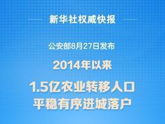 北京青年报国新办8月27日举行“推动高质量发展”系列主题新闻发布会 公安部发布最新统计 2014年以来共有1.5亿农业转移人口平稳有序进城落户 全国户籍人口城镇化率由2014年的35.9%提高到2023年的48.3% 公安部加快推行经常居住地登记户口制度 深入实施高频户政业务便利化举措 积极探索建立全国统一的人口登记管理制度 下一步,公安部将 全面落实城区常住人口300万以下城市取消落户限制要求 稳步推进居