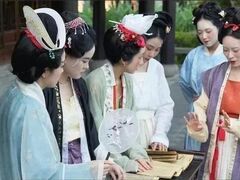 中国新闻网中新社北京8月10日电 题:七夕“晒书” 晒传统更晒新意 作者 周昕 吴约 在浙江宁波的梁祝文化公园,七个女孩扮演着不同角色,正尝试复原明代画家仇英《乞巧图》中的人物妆造。她们身着纱衫衣裙,头挽双垂髻,在青石圆桌上,用双手铺展开泛黄的古籍与画卷。 这是“和宜国风研习组”的女孩们在以“晒书”庆祝别样七夕。 每年农历七月初七,人们津津乐道于“牛郎织女”的传说,然而七月七自古以来也是“晒书节”。 晒书之